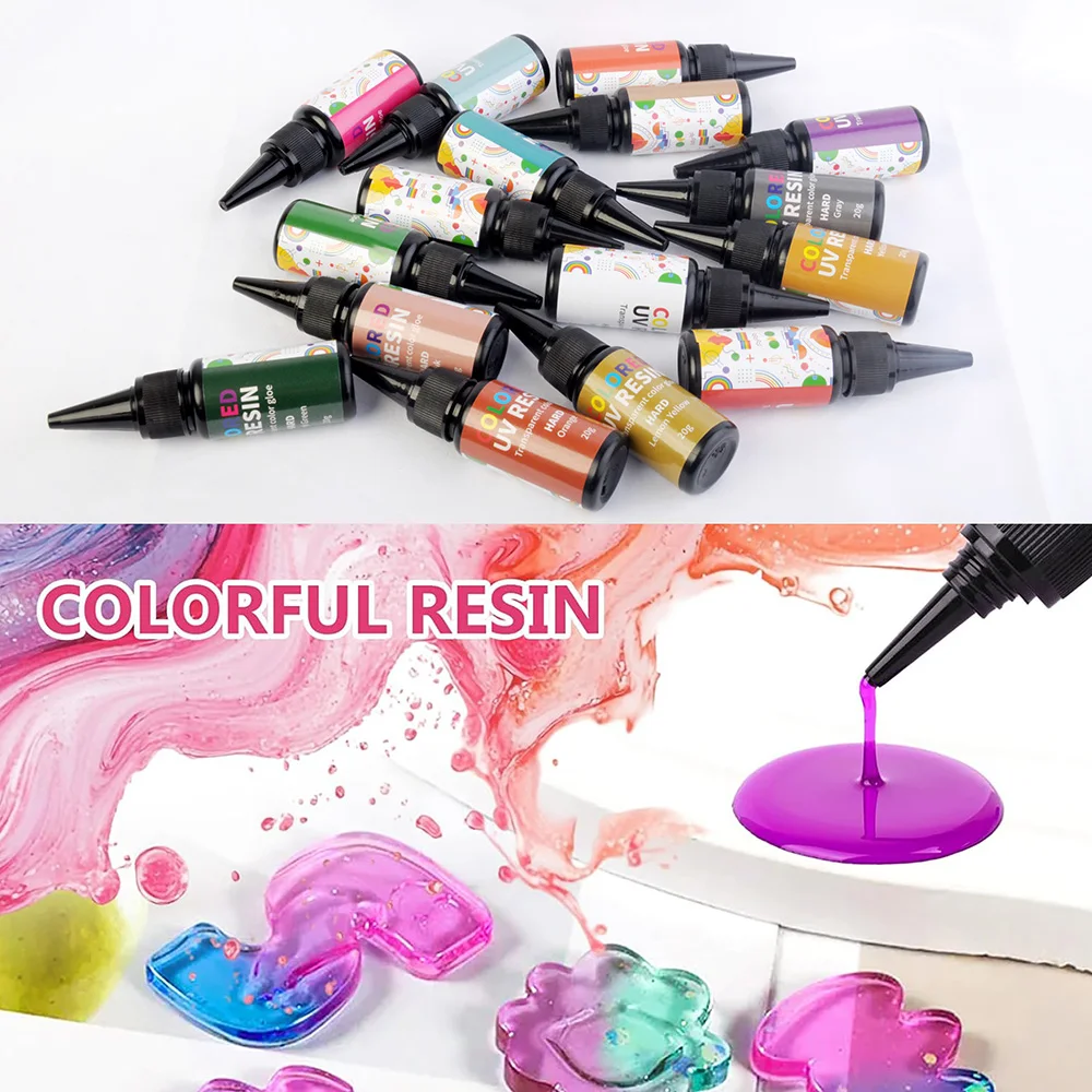 Add vibrant color and glossy perfection to your creations with this 16-color UV resin kit! Designed for convenience and creativity, this hard-type UV resin cures quickly under UV light or sunlight—no mixing required—making it perfect for both beginners and experienced crafters.