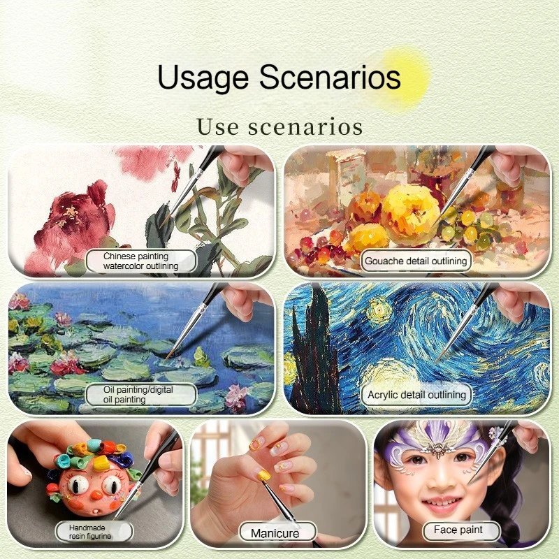 Suitable for watercolor, acrylic, gouache, model painting, nail art, and other detailed creative projects, this versatile brush set is perfect for beginners, hobbyists, and professional artists alike.