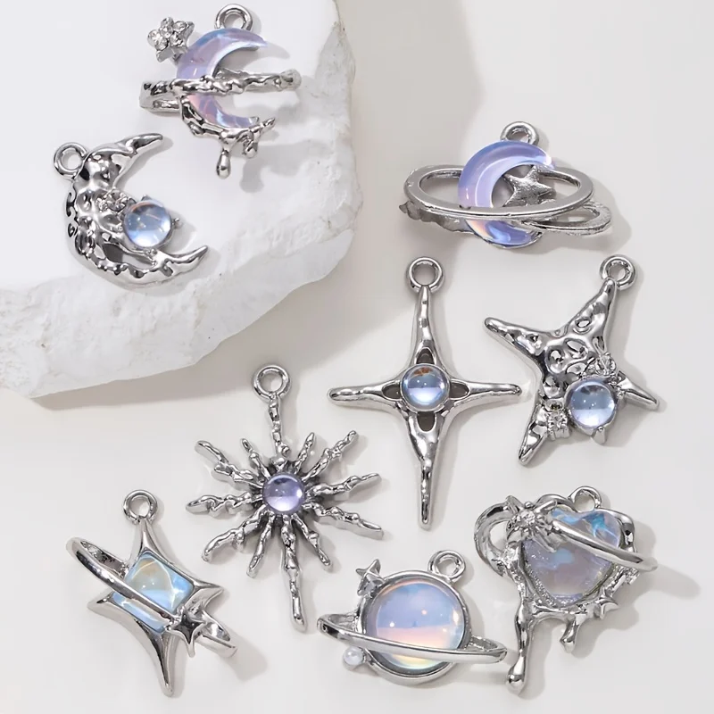 Add a celestial touch to your jewelry creations with this set of 5 star and moon enamel charms. Designed in a trendy Y2K style with vibrant blue enamel, these charms are perfect for DIY bracelets, necklaces, earrings, and other handmade accessories.